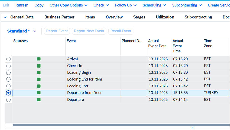 Bu sayede firmalar yalnızca planlanan süreci değil, gerçekleşen operasyonu da anlık olarak takip eder. SAP EM, IoT cihazları, taşıyıcı sistemleri veya SAP Business Network for Logistics gibi harici kaynaklardan gelen verileri tek noktada toplar ve beklenmeyen durumlarda (gecikme, rota sapması, sıcaklık ihlali vb.) kullanıcıları proaktif uyarılarla bilgilendirir. Böylece, taşımacılık süreci sadece planlama aşamasında değil, operasyonun tamamında görünür, ölçülebilir ve yönetilebilir hale gelir.