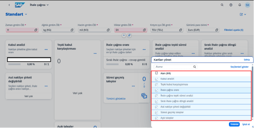 SAP TM İhale Çağrısı Analiz Ekranı