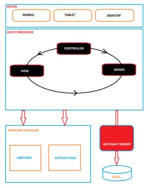 SAPUI5 uygulamasının çalıştırılmasında üç sistem bulunmaktadır. Back-end, front-end ve ara sistem.
