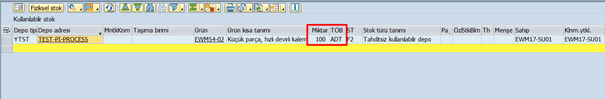 1. Sayım yapılacak depo adresindeki stoğu görüntüleyelim.