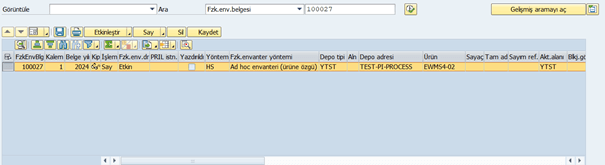2. İlgili depo adresinde ürüne özgü sayım belgesi yaratalım.