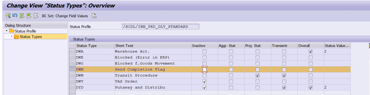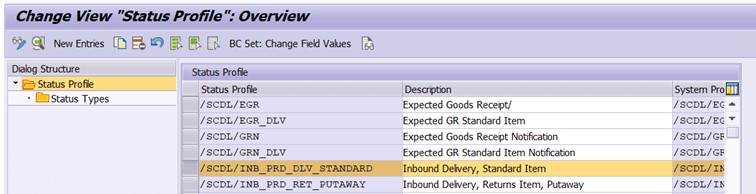 b. Choose the related Status Profile that is used for the Item Type for Inbound Delivery Process. In this scenario, /SCDL/INB_PRD_DLV_STANDARD which represents standard item for inbound delivery is used.
