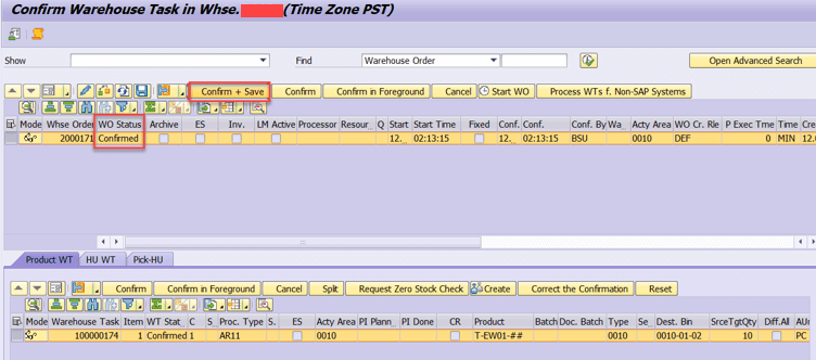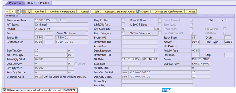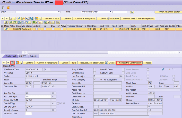 c. On the same screen, choose Correct the Confirmation and open the Product WT in a Form View.