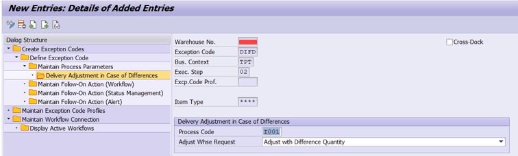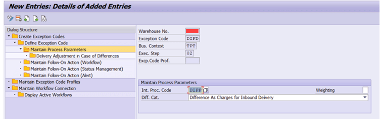 a. In customizing for SCM Extended Warehouse Management, go to Extended Warehouse Management → Cross-Process Settings → Exception Handling → Define Exception Codes