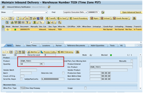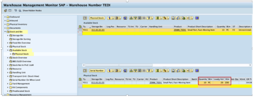 For inbound delivery of 10 PCs, we create and confirm warehouse task. We need to be able to display material in the EWM Monitor.