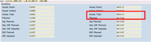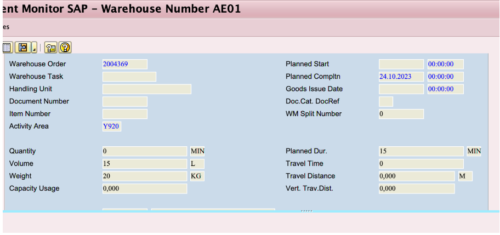 Because of our customizing, for the activity area Y920 and for PILM warehouse tasks, the system will automatically use the formula and display the planned duration time automatically in the details section for the warehouse order.