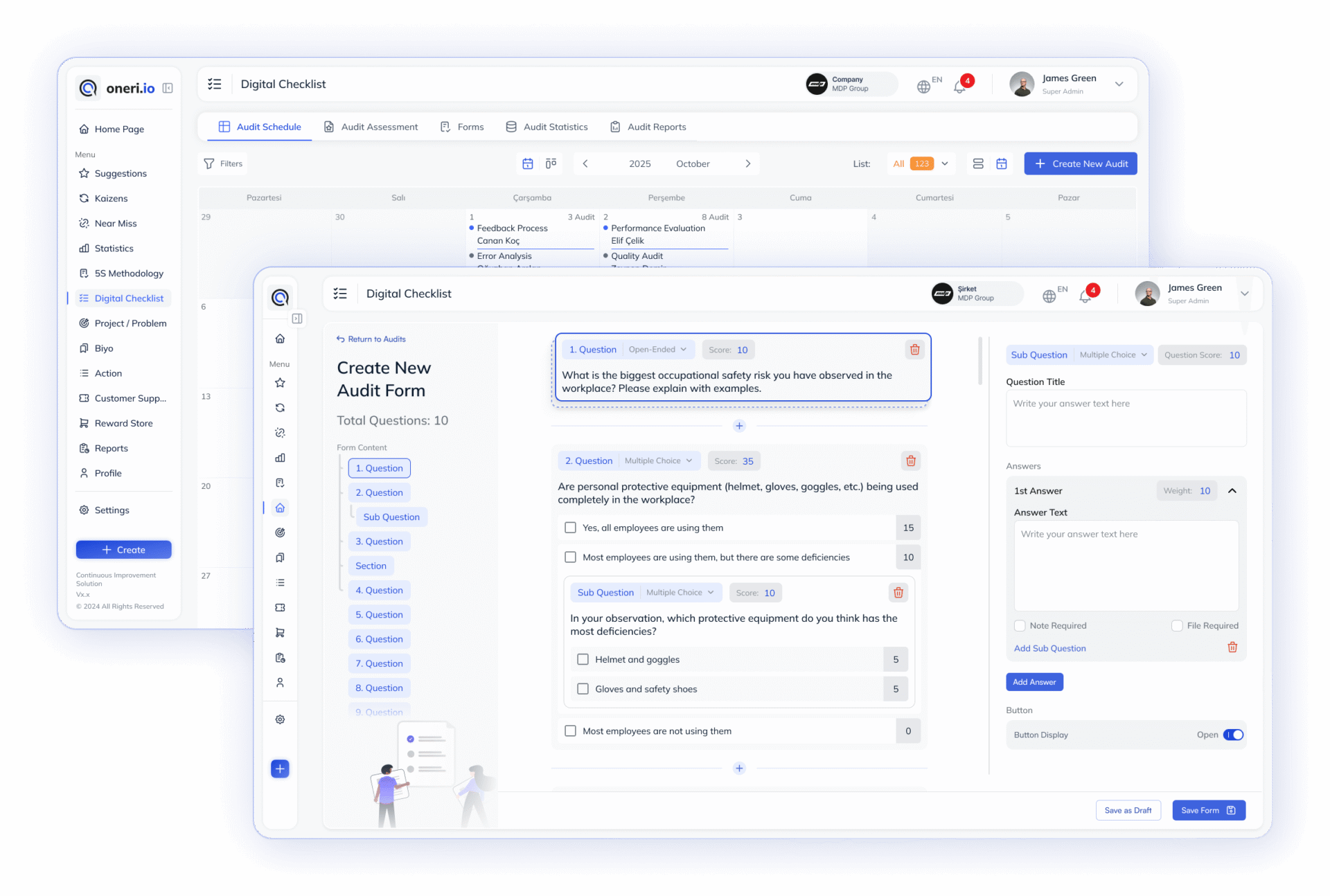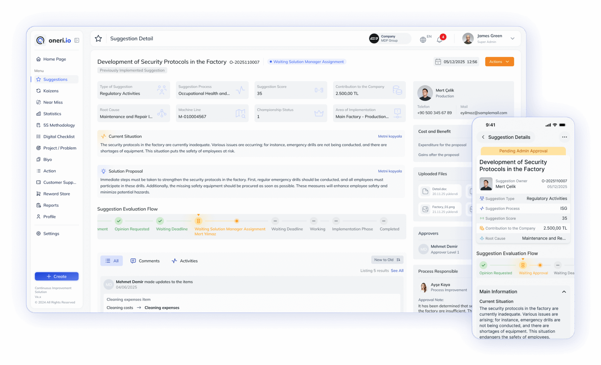 It is a system that offers three solutions on a single platform: Continuous Improvement Software, Suggestion System, Kaizen Solution and Near Miss Module. Access to the system is easy thanks to the web, mobile application and QR codes. In this way, employees can share their feedback on improvement areas, potential hazards, and work processes regardless of time and place, and can support the kaizen process at any time. In the next stage, the feedback provided by the employees is evaluated and analyzed by the authorized persons and the applicable ones are implemented.