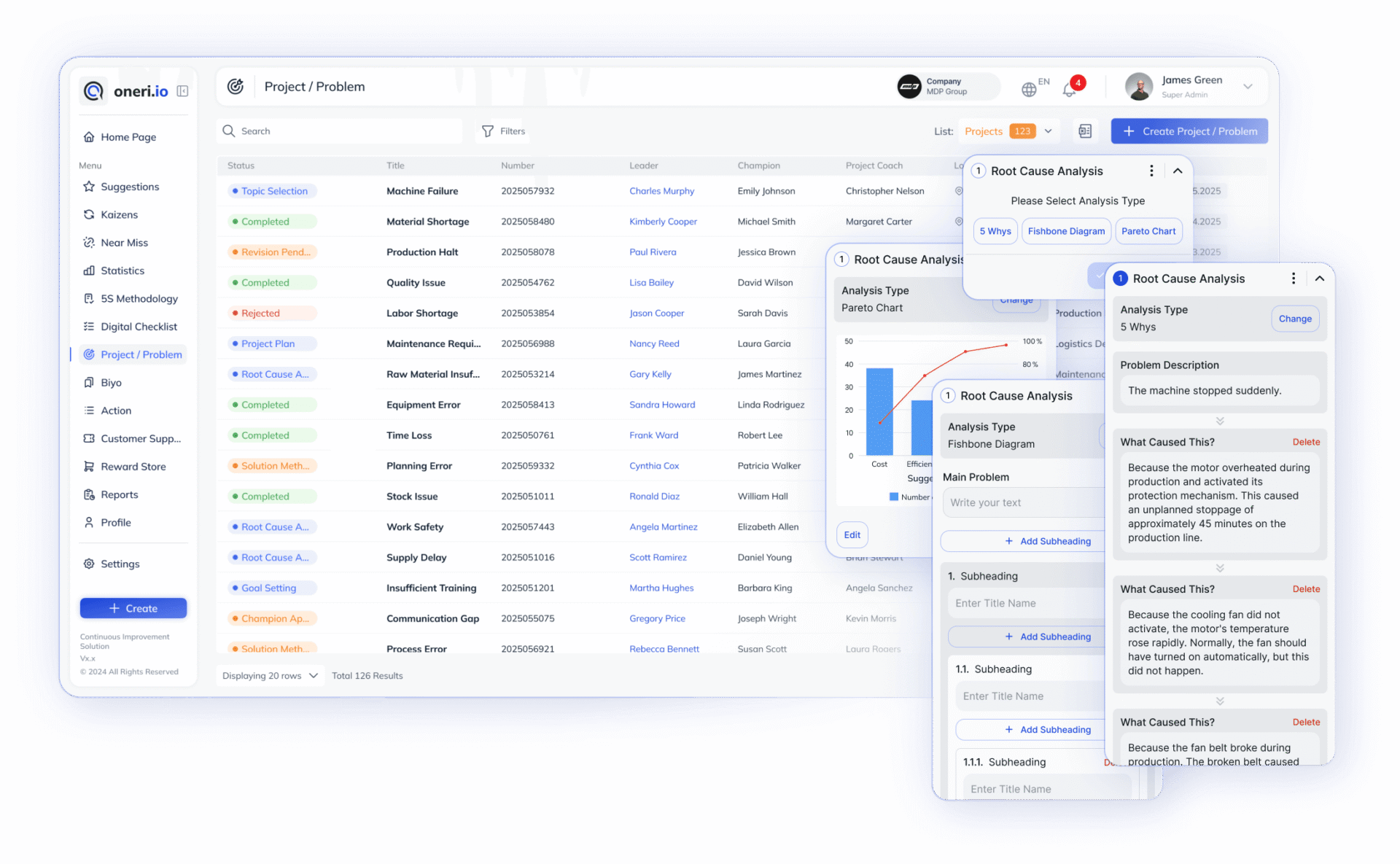 Our Continuous Improvement Solution, designed for both blue-collar and white-collar employees, ensures that all improvement initiatives are digitally managed and measurable.
